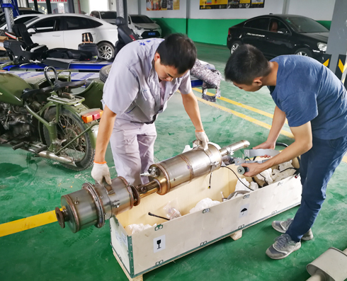 汽車尾氣經(jīng)過波紋管連接至凈化器,首先經(jīng)過DOC催化劑表面涂覆的貴金屬催化劑具有氧化性,主要起氧化作用,將尾氣中的HC、CO轉(zhuǎn)化為CO2和H2O,將顆粒中的SOF轉(zhuǎn)化為CO2,同時由于氧化反應(yīng)會產(chǎn)生大量的熱量,尾氣經(jīng)過DPF催化劑后會顯著提升溫度,提高CDPF對顆粒物的轉(zhuǎn)化效率。